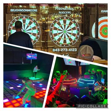 Hurl axes like a pro, battle it out in our high-energy Turbo Quiz trivia game show, dodge disaster in The Floor is Lava, burn rubber in the Mario Kart Arena, and swing for glory on our world-class golf simulator.